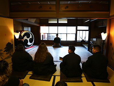 学問と武道と両方の道を研鑽し、文武両道である侍。侍にとって文の道と武の道は、車輪の両輪のようなもの。文の道と武の道を表裏一体であると考えるISSAでは、茶禅道・吹禅道・筆禅道・武禅道・舞禅道の5つの侍禅によって文武一道を目指します。僧侶の禅とは悟りを得るためのもの。一方、侍の禅とは、今生の命・生きることに対する執着を手放す死生観を示すものです。侍独自の禅思想によって武士道精神を修得します。